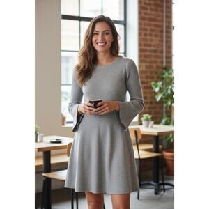 Ann Taylor Women's Marled Gray Ribbed Dress Bell Sleeves Size Large