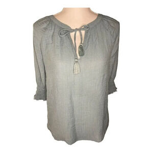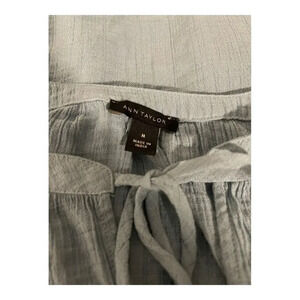 Ann Taylor Women’s Medium Blue Crinkle Tie Neckline Puff Sleeve Blouse