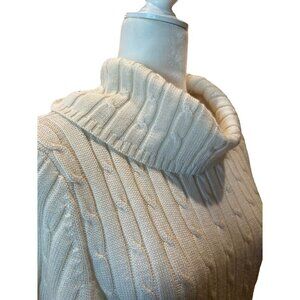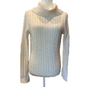 Ann Taylor Women's Medium Cream Cable Knit Cowl Neck Sweater