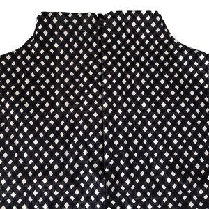 The product is a stylish Ann Taylor Women's Mock Neck Box Tank Top in size small, featuring a classic argyle/diamond pattern in navy blue and white. This sleeveless top has a mock neck neckline and a pullover and zip closure, making it suitable for both party/cocktail and workwear occasions. Made from a blend of spandex, nylon, and rayon, this tank is machine washable for easy care. The timeless design and quality construction make it a versatile piece for the summer, fall, and spring seasons. Made in Vietnam, this top embodies a sophisticated yet approachable style for the modern woman.
