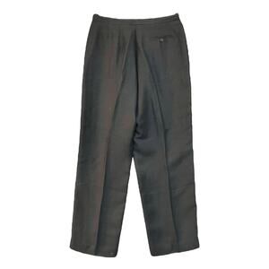 This garment features a zip fly with hook-and-bar closure, a high-rise waist, no front pockets, and a single back button pocket. It is lined, with a linen/rayon shell and 100% acetate lining.