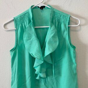Ann Taylor Women's Pull on Ruffle Top V-Neck Sleeveless Green Size: XSP