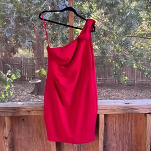Ann Taylor Women's Red One Shoulder Side Pleated Cocktail Dress Size 12. NEW