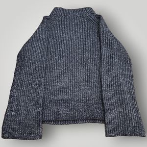 Ann Taylor Women's S Navy Blue & White Marled Ribbed-Knit Mock Neck Long Sleeve Pullover Sweater