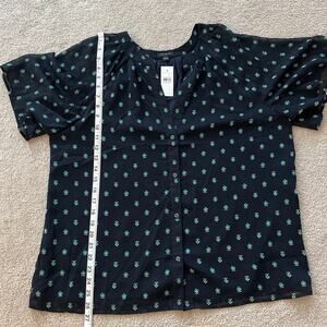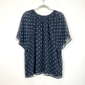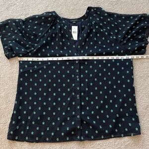 Ann Taylor Womens Shamrock Button Up Short Sleeve Blouse Navy Size Large NWT