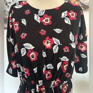 Ann Taylor Women's Short Sleeve Pleated Floral Design Red Flowers Blouse Size L