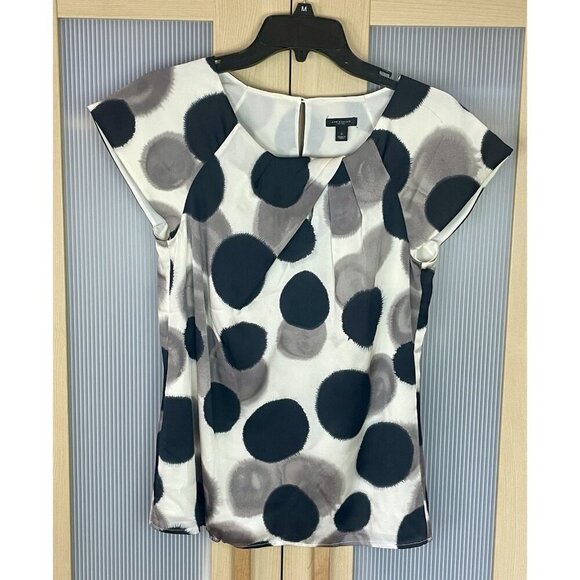 Ann Taylor Womens Silk Top Sz 2 Shirt Blouse Polka Dot Short Sleeve Party Career