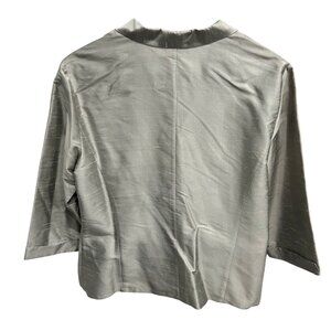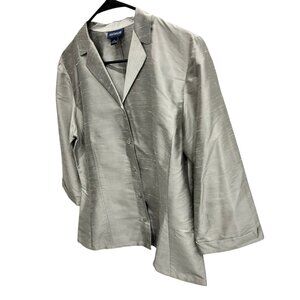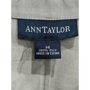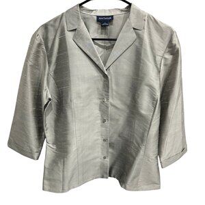 Ann Taylor, silk blazer, women's top, silver top, size 14, button-up, tailored fit, elegant blouse, silk clothing, formal wear, office wear, three-quarter sleeve, women's fashion