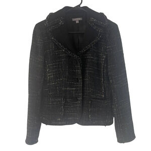 Ann Taylor Women's Size 0 XS Black Tweed Wool Blend Blazer Jacket
