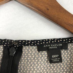 Ann Taylor Women's Size 00P 3/4 Sleeve Black Off White Printed Sheath Dress