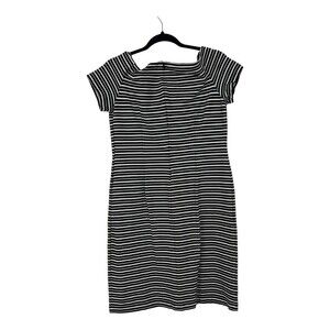 Ann Taylor Womens Size 10 Black White Stripe Off The Shoulder Dress