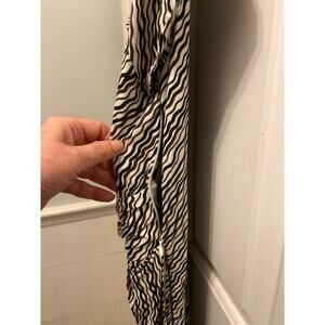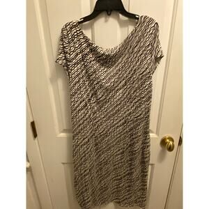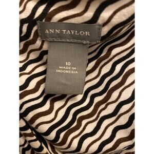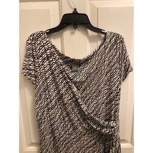 Ann Taylor Women's Size 10 Faux Wrap Black Brown White Short Sleeve Midi Dress