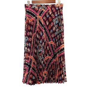 Ann Taylor Womens Size 4 Floral Chain Scarf Print MIcro Pleated Lined Midi Skirt