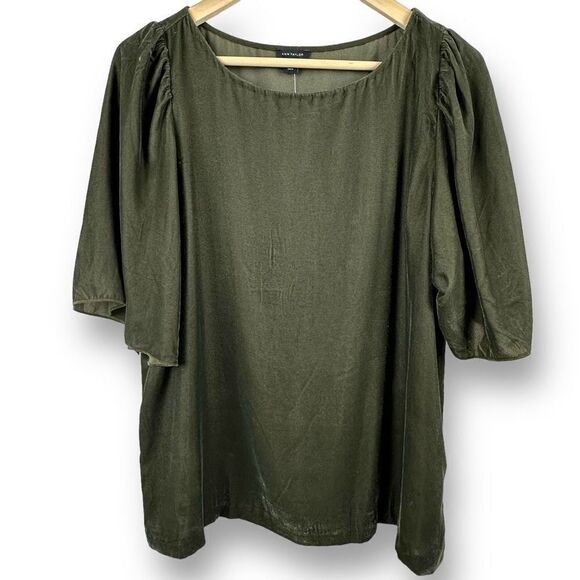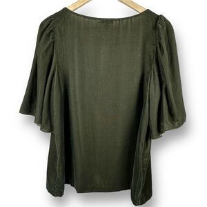 Ann Taylor Women's Size M Oversized Short Bell Sleeve Top Olive Green Solid New