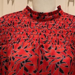 Ann Taylor Women’s Size S Blouse Top High Ruffle Neck Ruching Balloon Sleeves