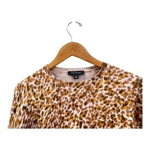 Ann Taylor Womens Size XS Seashell Leopard Print Cotton Long Sleeve Sweater