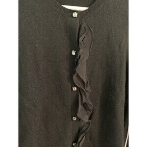 Great condition. Lots of life left in it. Womens small black button down cardigan with sheer ruffle design. All buttons are in original shape. 100% cashmere
