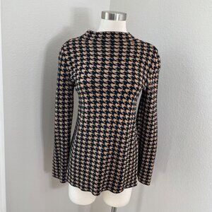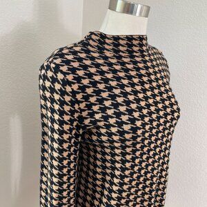 Ann Taylor Womens Small Petite Brown Black Houndstooth Mock Neck Sweater