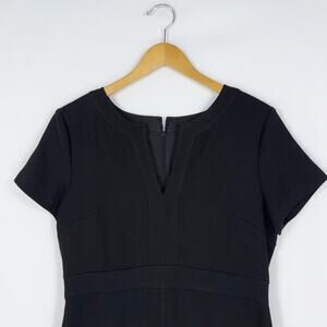 Ann Taylor Women's Split V-Neck Sheath Dress Size 10 Black