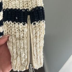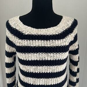 Ann Taylor Womens Stucco Knit Sweater Navy Winter White Stripe Cotton - S