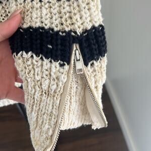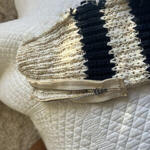 Ann Taylor Womens Stucco Knit Sweater Small Black Winter White Stripe Cotton
