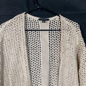 Ann Taylor Womens Sweater Brown Cardigan Open Front Short Sleeve Open Knit Large