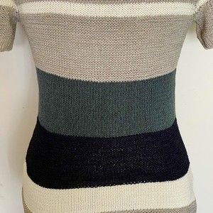 Ann Taylor Womens Sweater Knit Striped XS Colorblock Short Sleeve Cable Chain