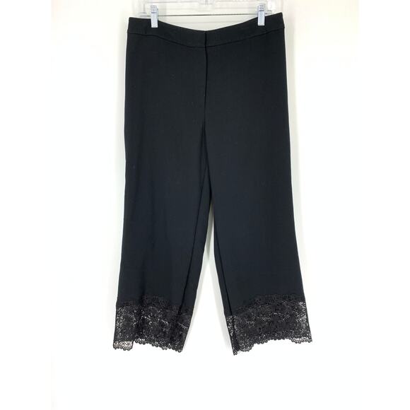 Ann Taylor Women's Sz 6 Lace Hem High Rise Crop Trouser Pants Straight Leg Black