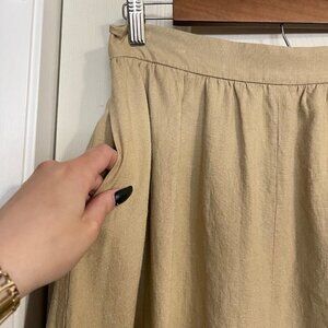 Ann Taylor Womens Tan Linen Blend Pockets Lined Modest Midi Skirt Size 4 Petite