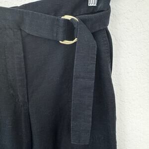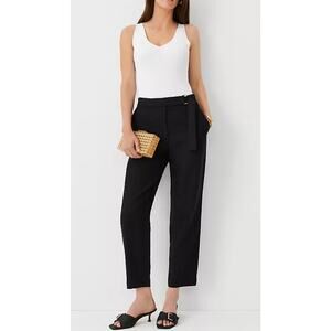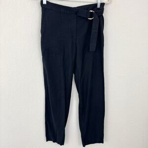 Ann Taylor Womens The Belted Ankle Pant Size 0 Linen Blend Office Black