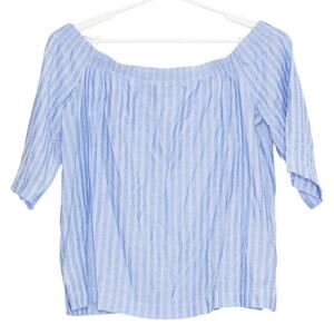 Ann Taylor Womens Top Off Shoulder Boxy Lightweight Stripe Blue Size Large FY