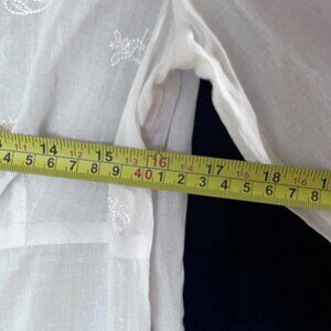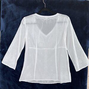 Ann Taylor Womens Top Size 4 Cream Boho Embroidered Semi Sheer V-Neck 3/4 Sleeve