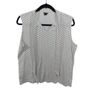 Ann Taylor Womens Blouse Size XL Cotton White Polka Dot Jersey Sleeveless Top