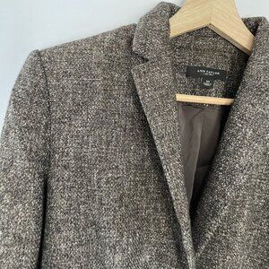 Ann Taylor Womens Tweed Blazer Size 10 Brown-Gray Single Button Long Sleeve