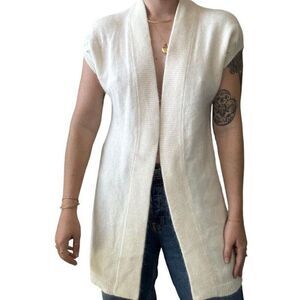 Ann Taylor Womens White Angora Blend Fluffy Fuzzy Short Sleeve Cardigan Sz S