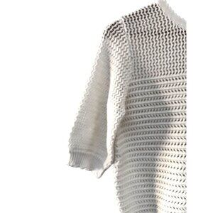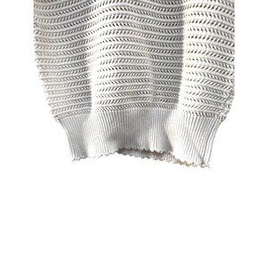 This Ann Taylor open-knit sweater offers a breathable and lightweight design suitable for layering. Its ribbed hem and half-sleeves ensure a polished look.