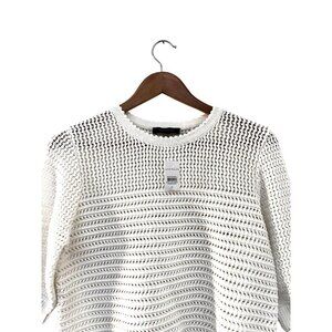 Ann Taylor Womens White Open-Knit Pullover Short Sleeve Sweater Medium