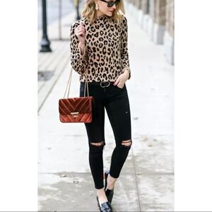 Ann Taylor Womens XS Leopard Print Wool Blend Mock Neck Knit Sweater Brown