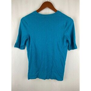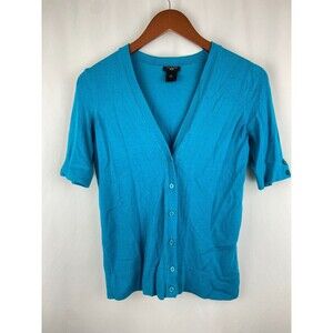 Ann Taylor Womens XSP Blue Fitted 3/4 Sleeve Button Down Cardigan Preppy Sweater