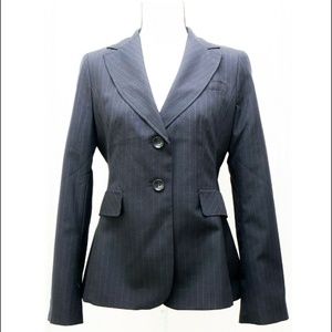 Ann Taylor Women's blazer size 6 black Stripped career 2 button flap pocket.