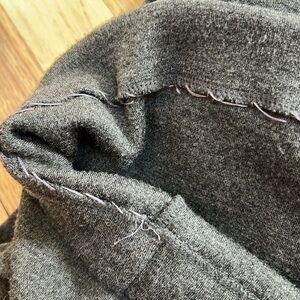 Gently used. Hidden side zipper. Very soft. Some very minor piling. Pit to pit measures approximately 16 inches across front. Waist measures approximately 15 inches across front. Length measures approximately 36 inches from shoulder to hem. Hem has been hand stitched since hem came out. See photos. Wool blend.