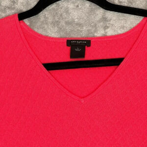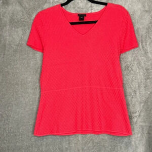 Ann Taylor Womens Top Large Coral Pink Solid Short Sleeve V Neck Knit