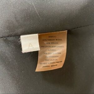 Condition: used. Some puckering to wool at right shoulder and small blemish to fabric on right flap pocket. No holes or stains.