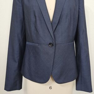 Ann Taylor Wool Blend Peplum Blazer in Navy Blue Size 6
