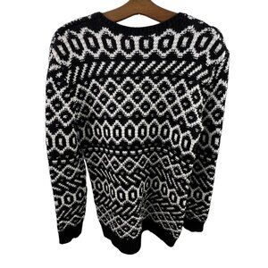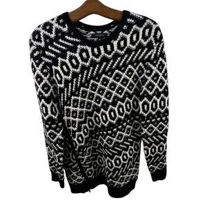 Ann Taylor Wool Blend Sweater Medium Black & White Geometric Pattern Side Zip