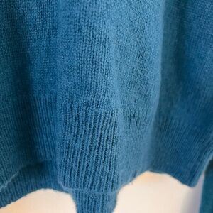 Ann Taylor Wool Blend Teal Blue Sleeve Bow Crewneck Pullover Sweater Medium