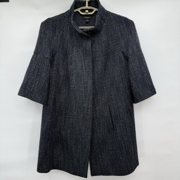 Ann Taylor Wool Blend Tweed Swing Coat in Navy Comfort Business Cocktail Large