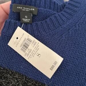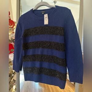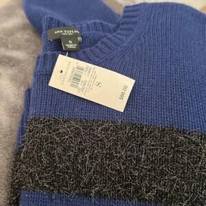 Ann Taylor wool and cashmere sweater, new with tags. Blue with black stripes.