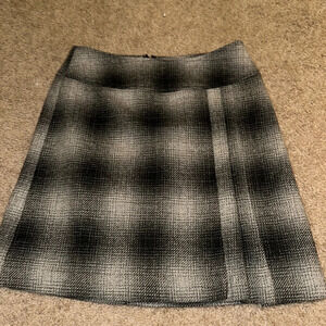 Ann Taylor Wool Nylon Gradient Grey Black Plaid Zip Up Mini Skirt Size 2