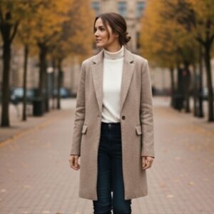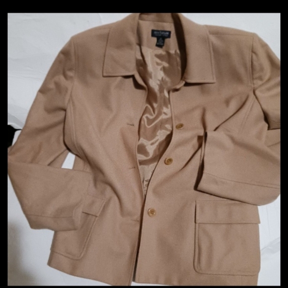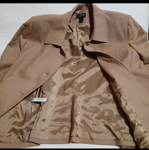 Wool blend button down jackets with pockets. Silky lining .from smoke free homeElegant tan blazer with button closure and front pockets. Perfect for formal occasions.